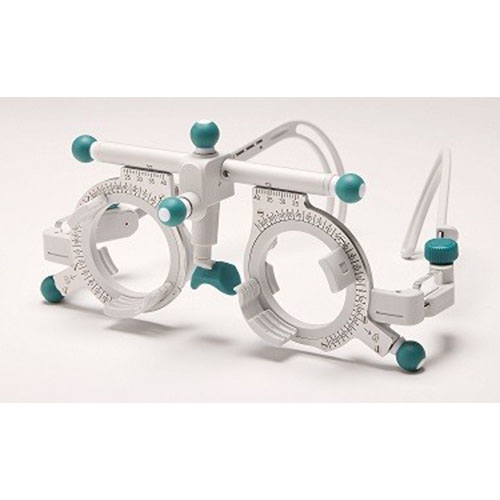 Helppokäyttöisissä koekehyksissä on yhteensä viisi linssipaikkaa (3 edessä ja 2 takana) standardikokoisille 38mm koelinsseille ja kehyksien mukana tulee neljä eri levyistä nenätyynyä.