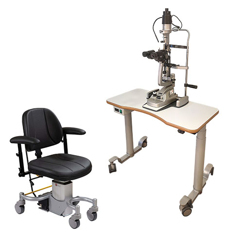 Näöntutkimusyksikkö laitepöytä ja potilastuoli